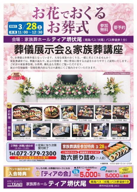 ティア堺伏尾 お花でおくるお葬式 /葬儀展示会&家族葬講座 ※ご予約制