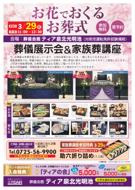 ティア泉北光明池 お花でおくるお葬式 /葬儀展示会&家族葬講座 ※ご予約制