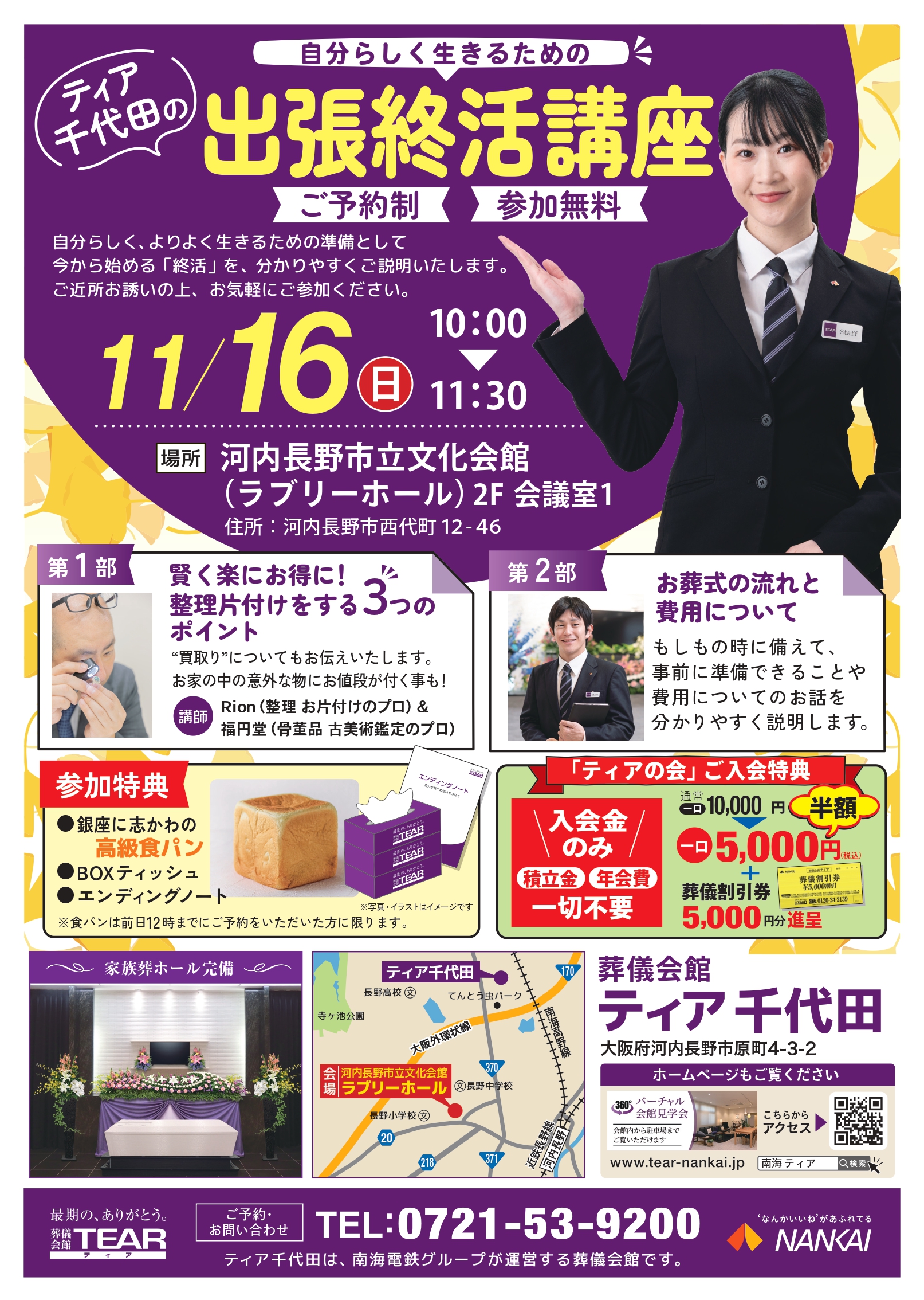 ティア千代田 出張終活講座 / 整理片付けの3つのポイント&お葬式の流れと費用について