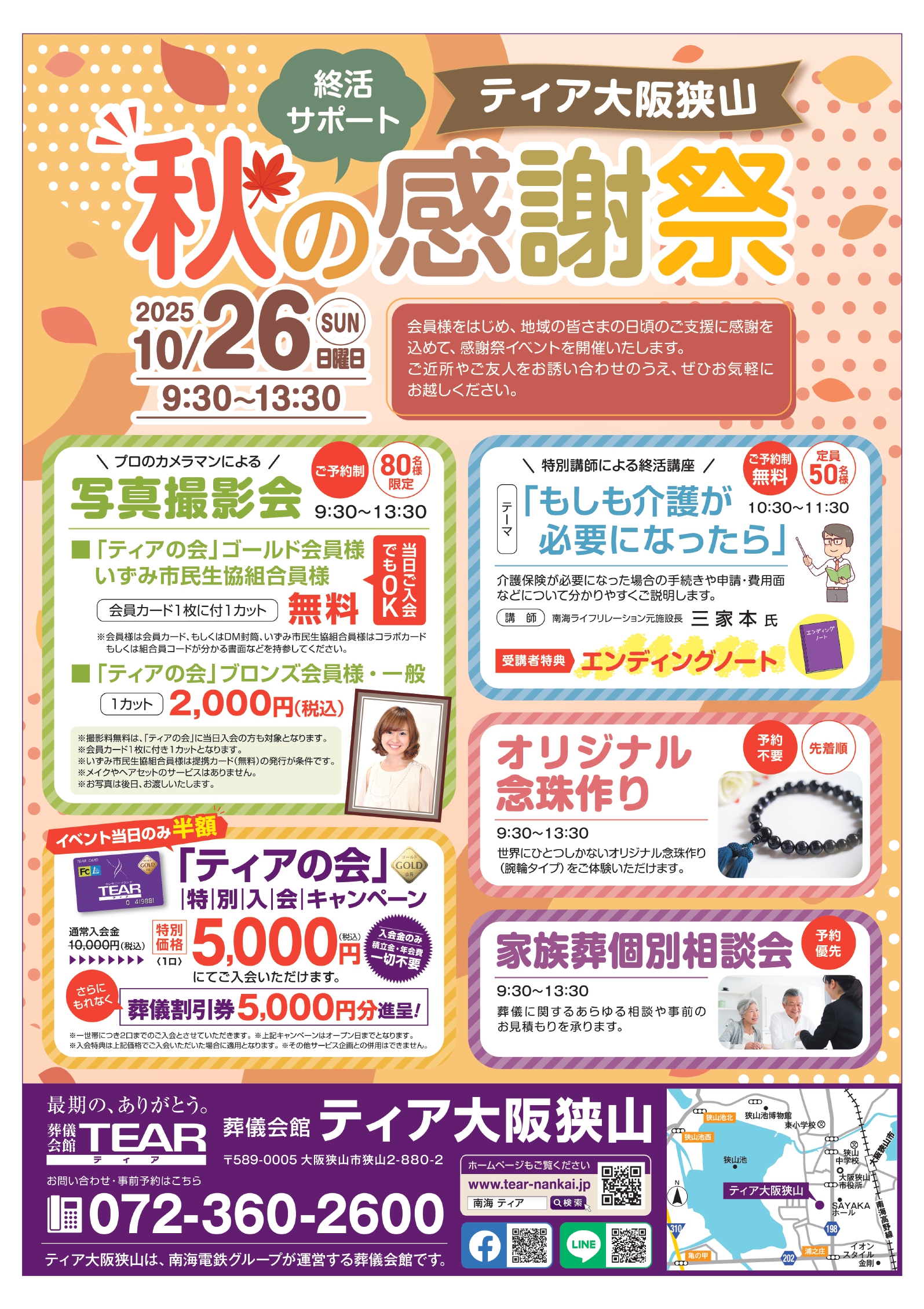 撮影料:「ティアの会」ゴールド会員様・いずみ市民生協組合員様・・・無料