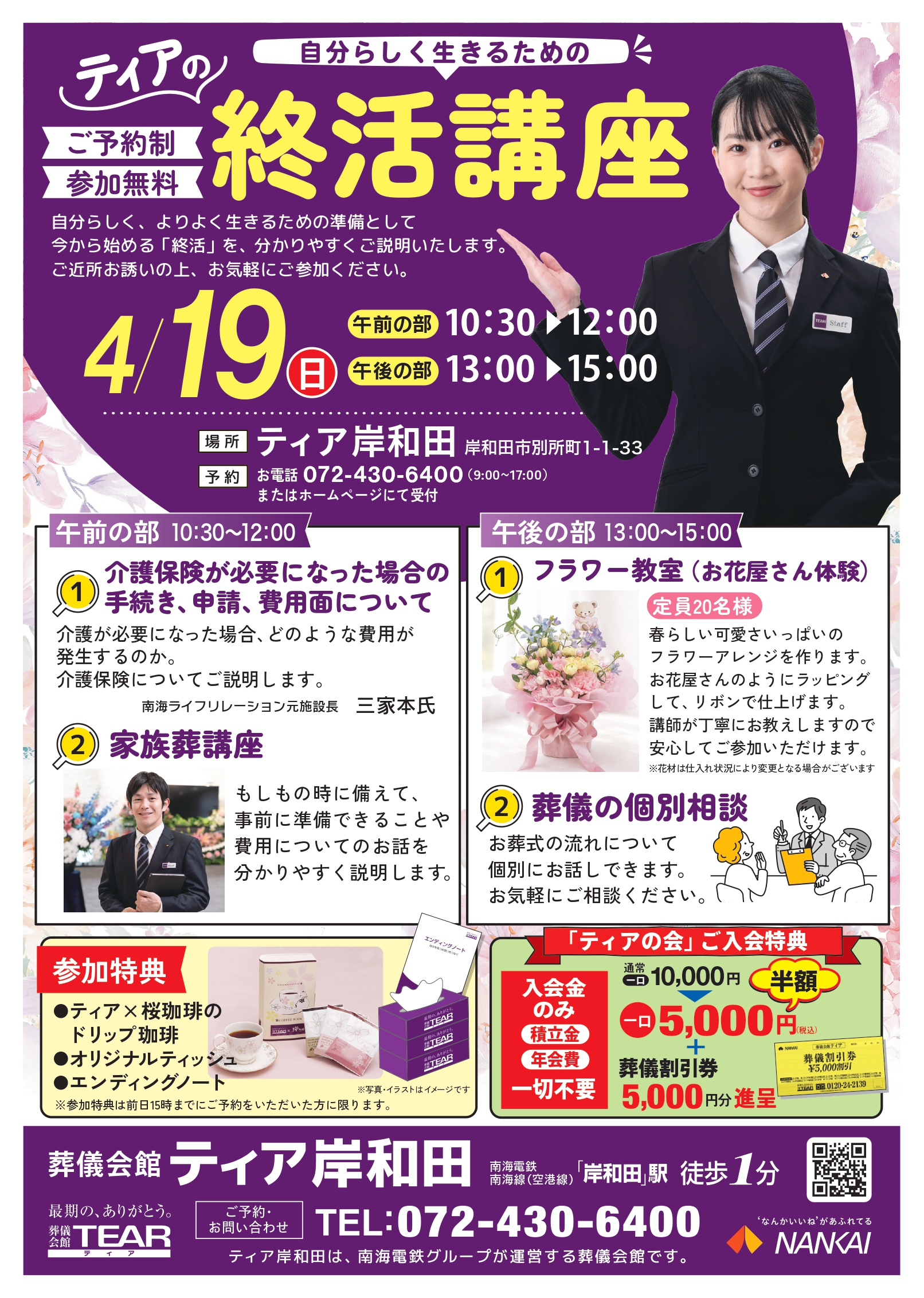 ティア岸和田 終活講座/介護保険・フラワー教室・葬儀相談など