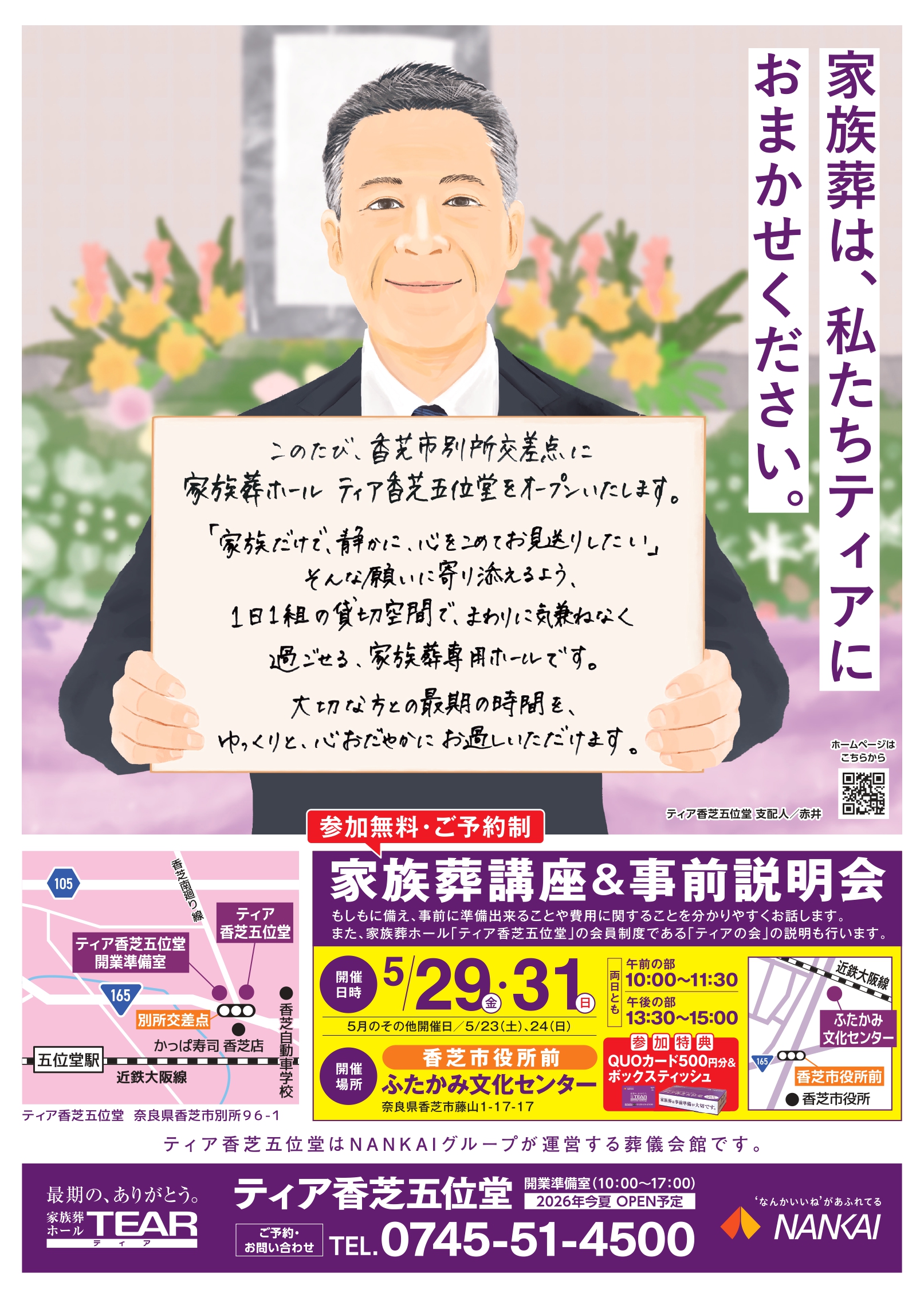 ティア香芝五位堂 家族葬講座&事前説明会/ふたかみ文化センター