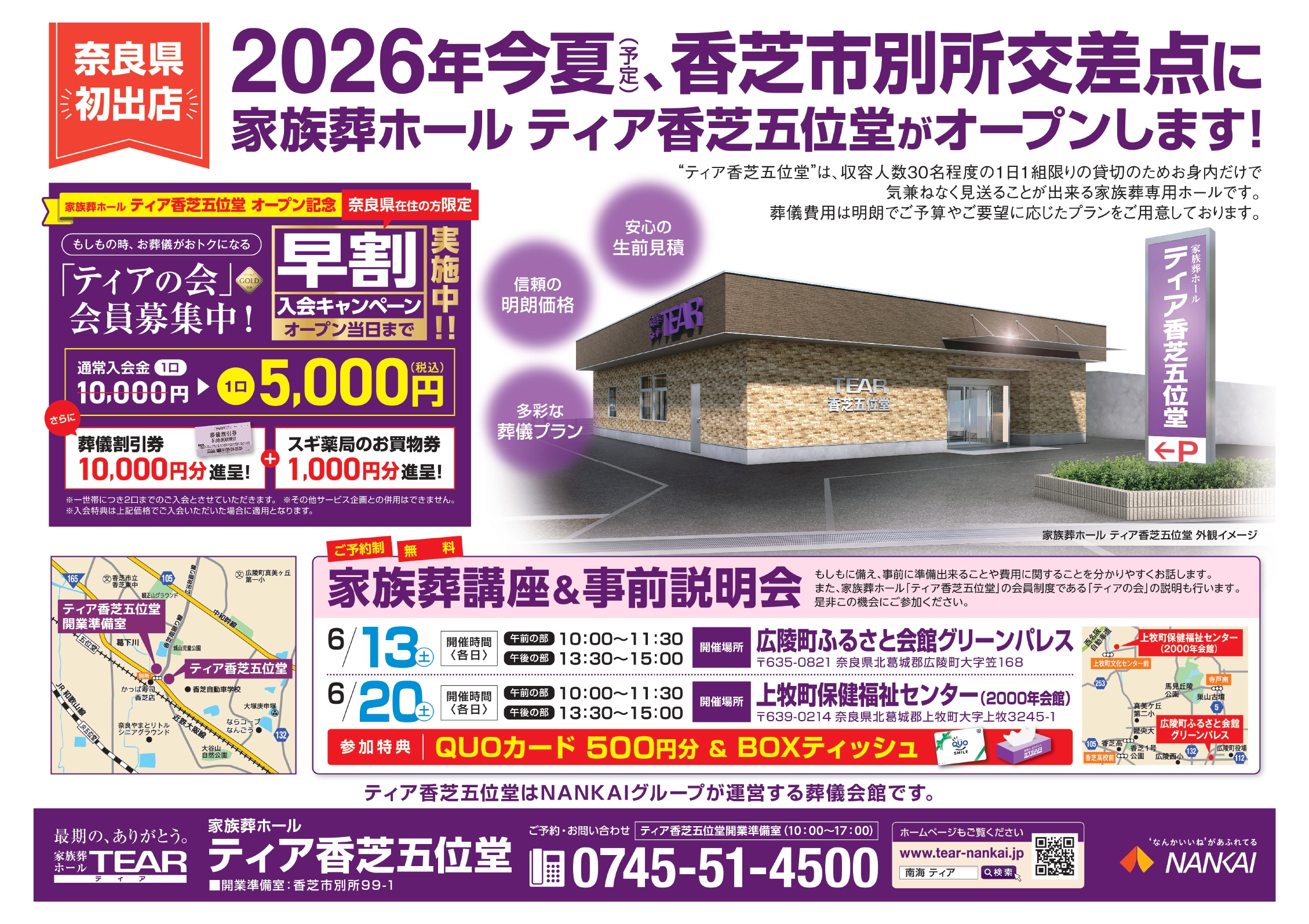 ティア香芝五位堂 家族葬講座&事前説明会/上牧町保健福祉センター(2000年会館)